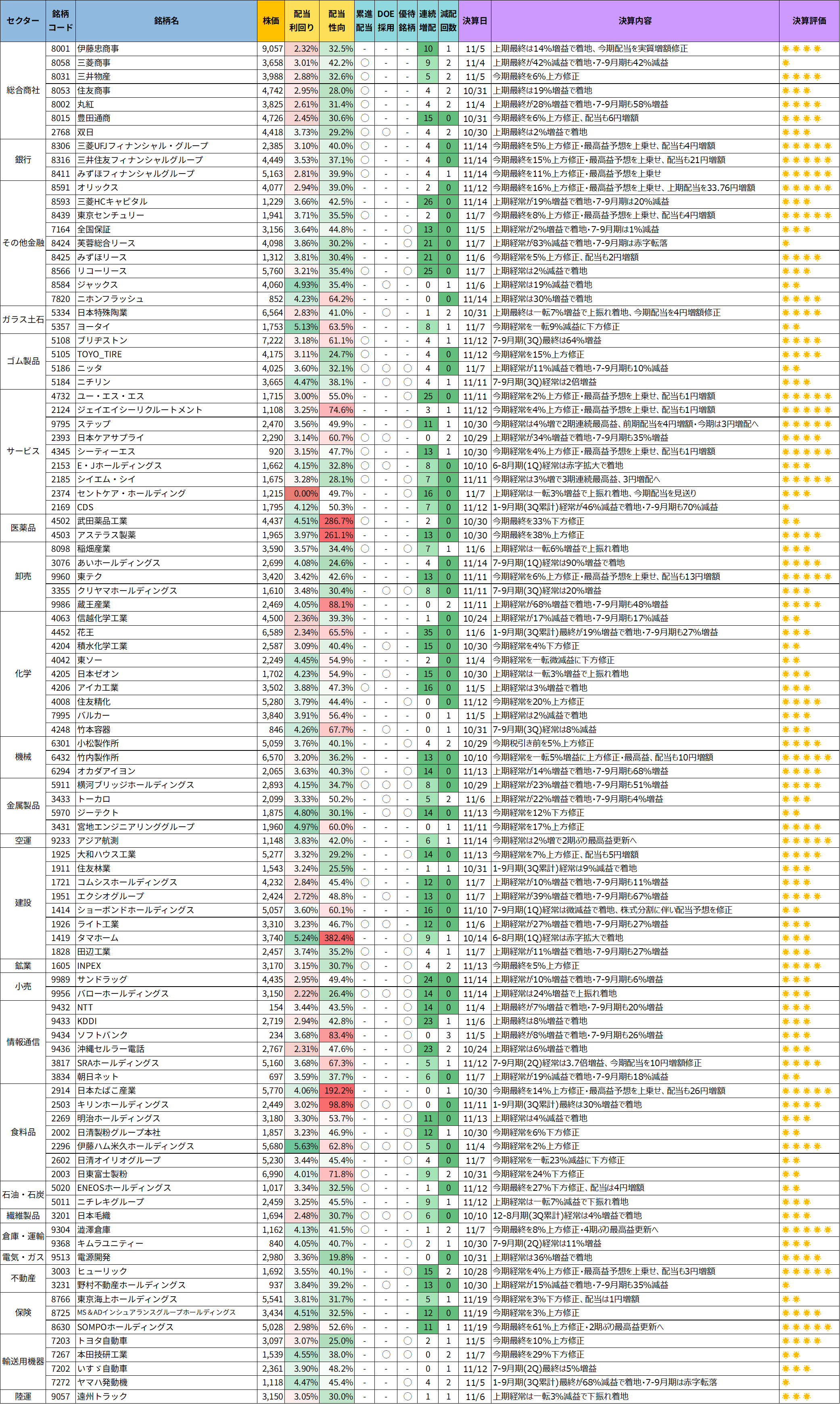 主要企業の決算内容を、⭐の数でひと目でチェックできます👀