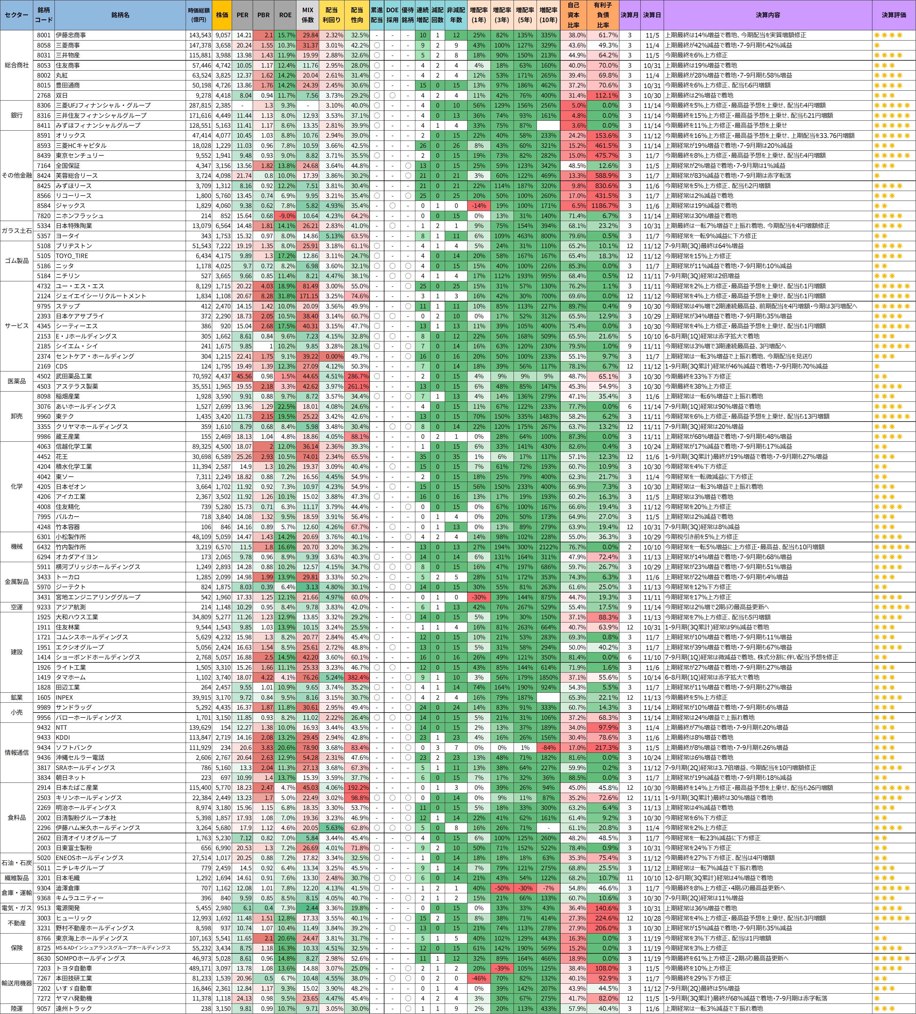 決算評価リスト(株価情報は、2025年11月24日時点)