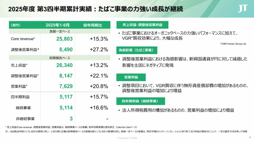- 四半期利益(親会社帰属):3,604億円(前年同期比:+97.4%)