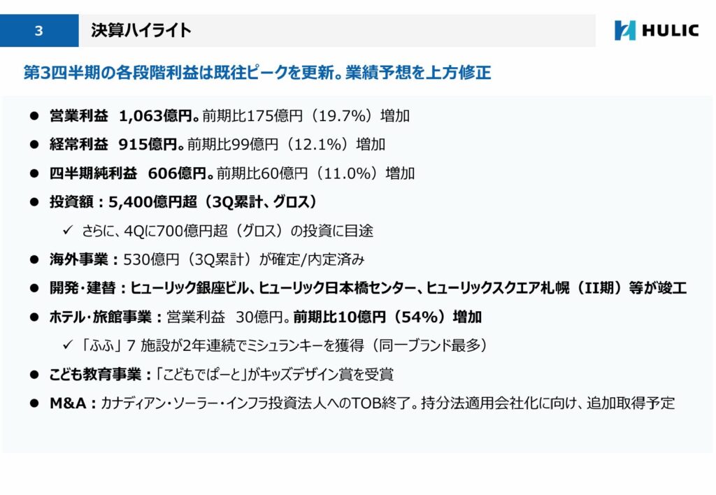 今回の決算でも収益成長が続いており、販売用不動産・賃貸収益・ホテル事業がバランス良く伸びている点は安心材料です。