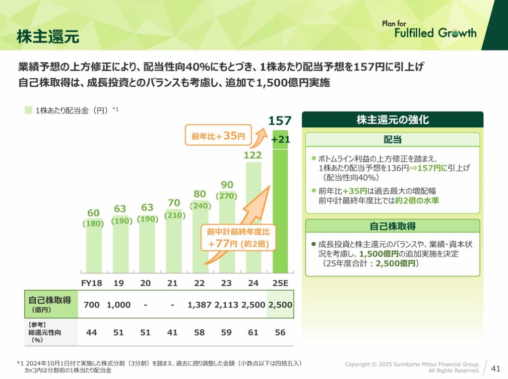- 2025年度は1,500億円以上の自己株買いを予定。