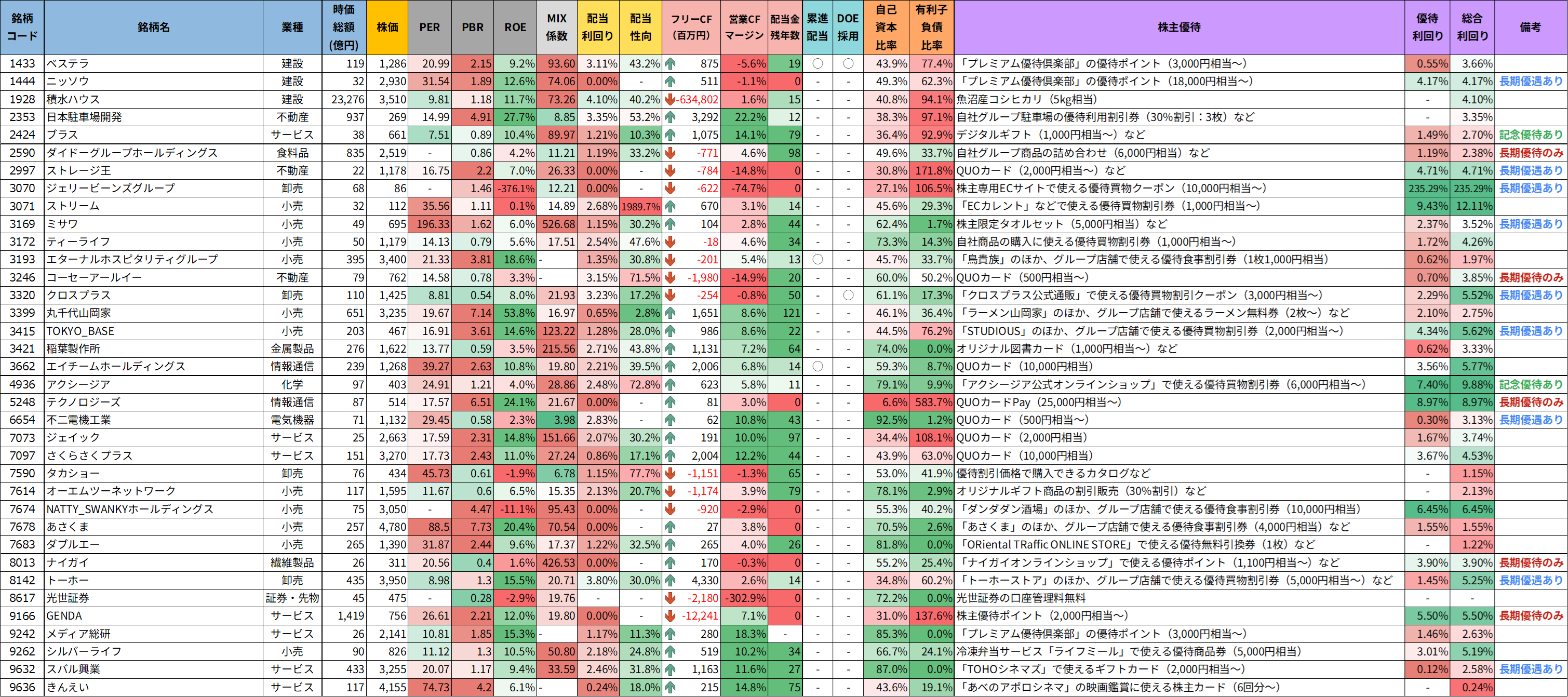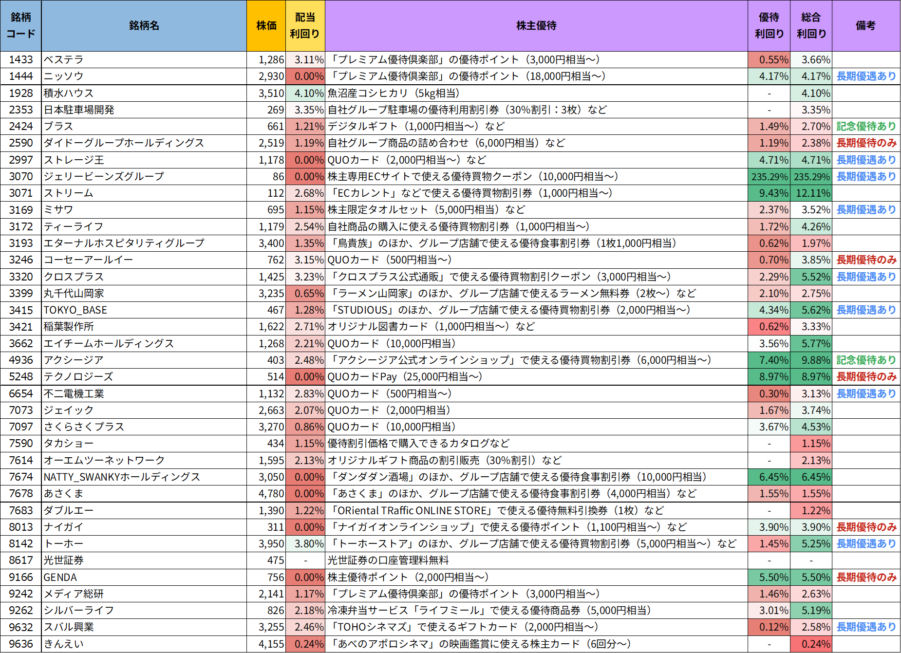 優待銘柄リスト(詳細版)