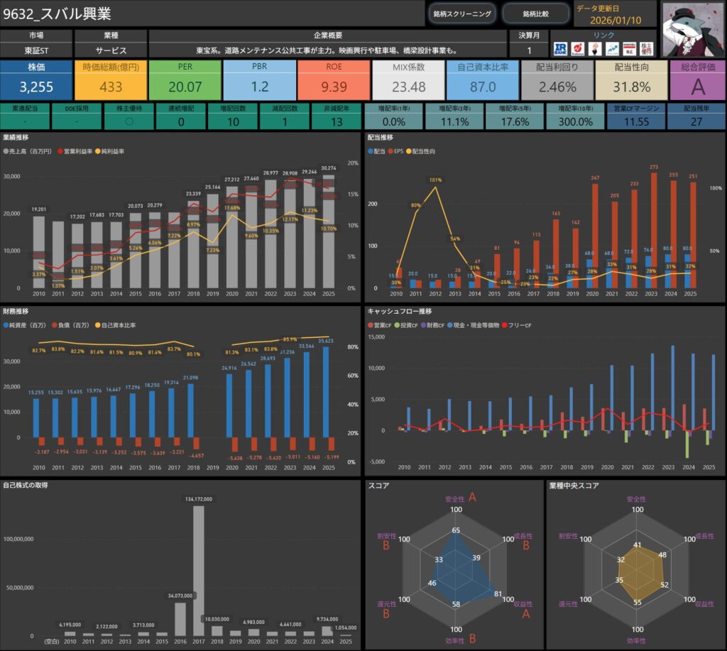 - スバル興業は、道路メンテナンスや公共工事を中心に安定した需要が見込める事業を展開しており、景気に左右されにくいビジネスモデルが強みです。