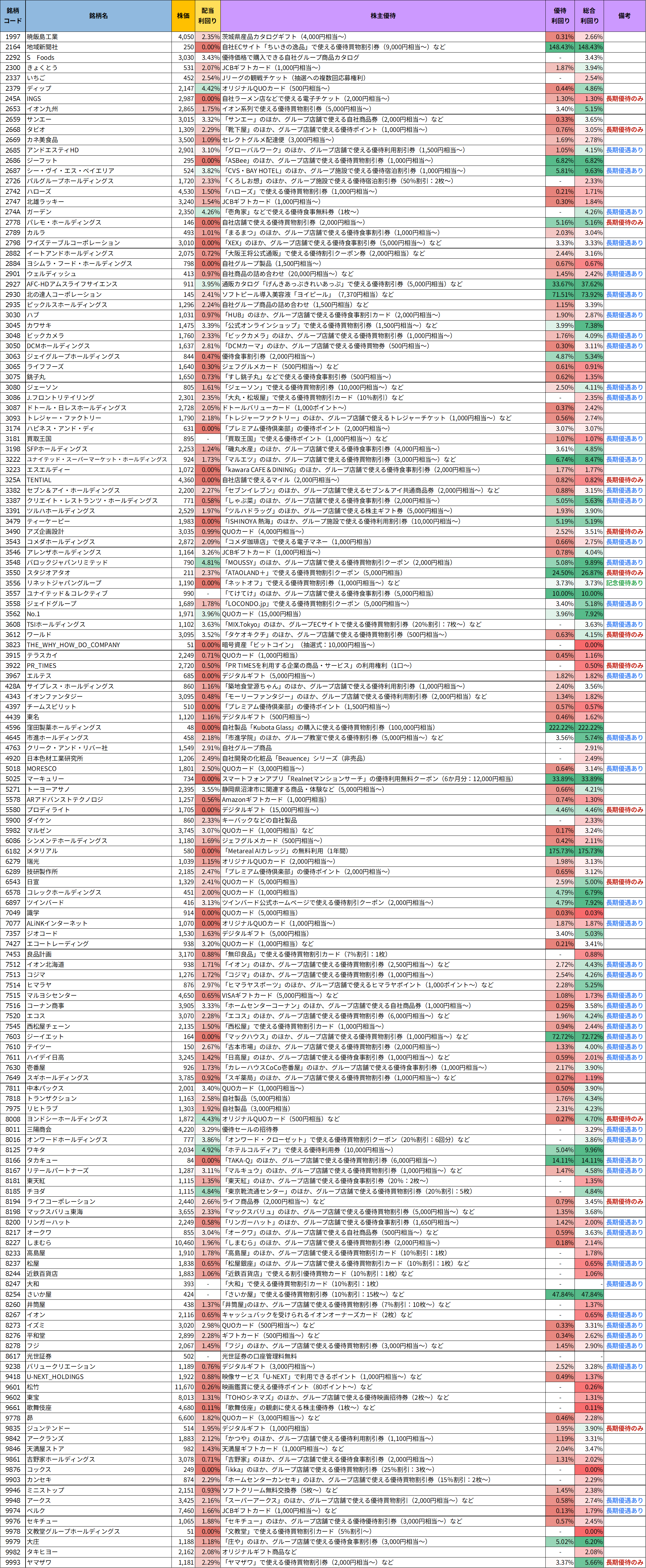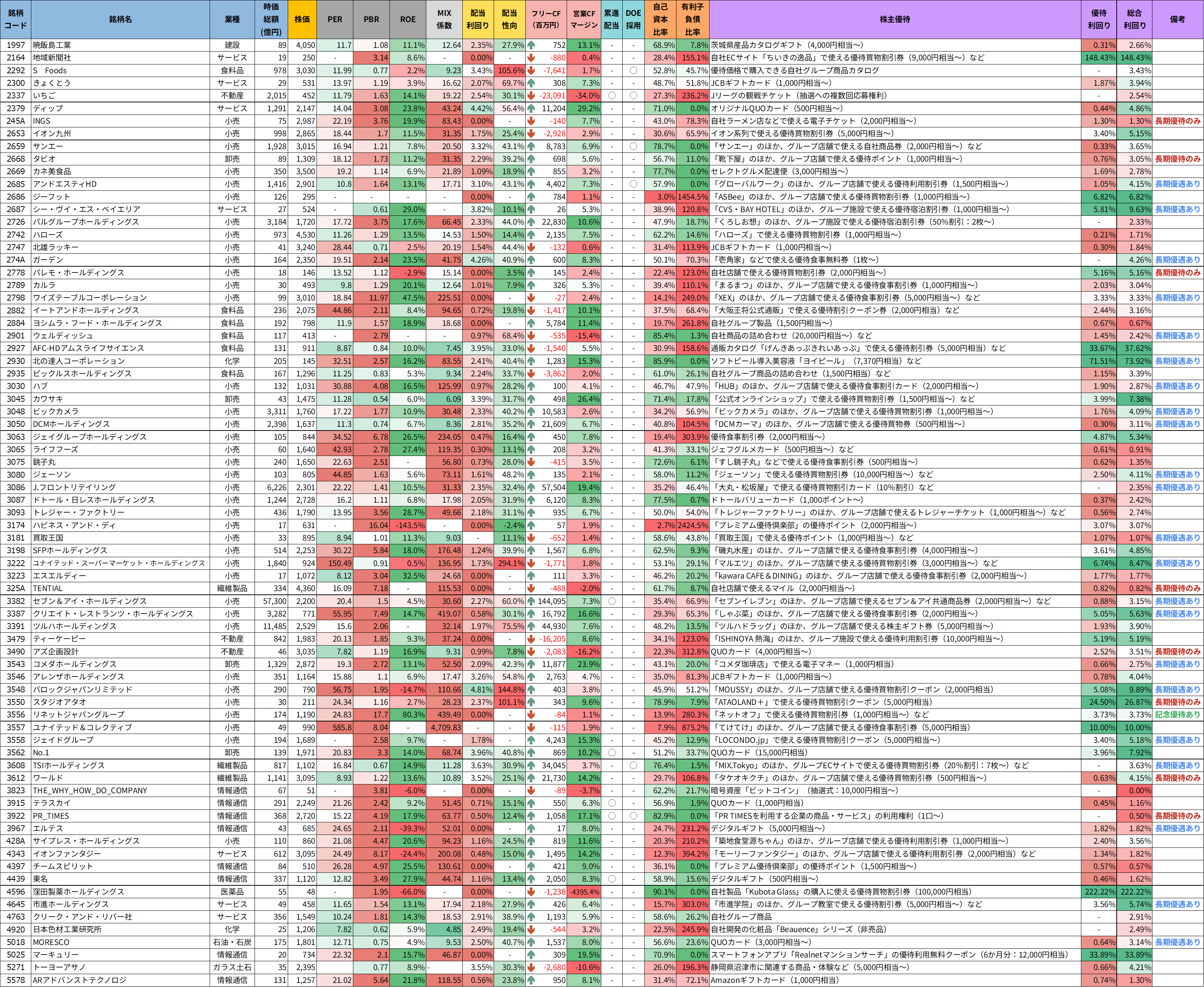 今回ご紹介する株主優待銘柄を、より見やすく整理した「優待銘柄リスト」をご用意しました。