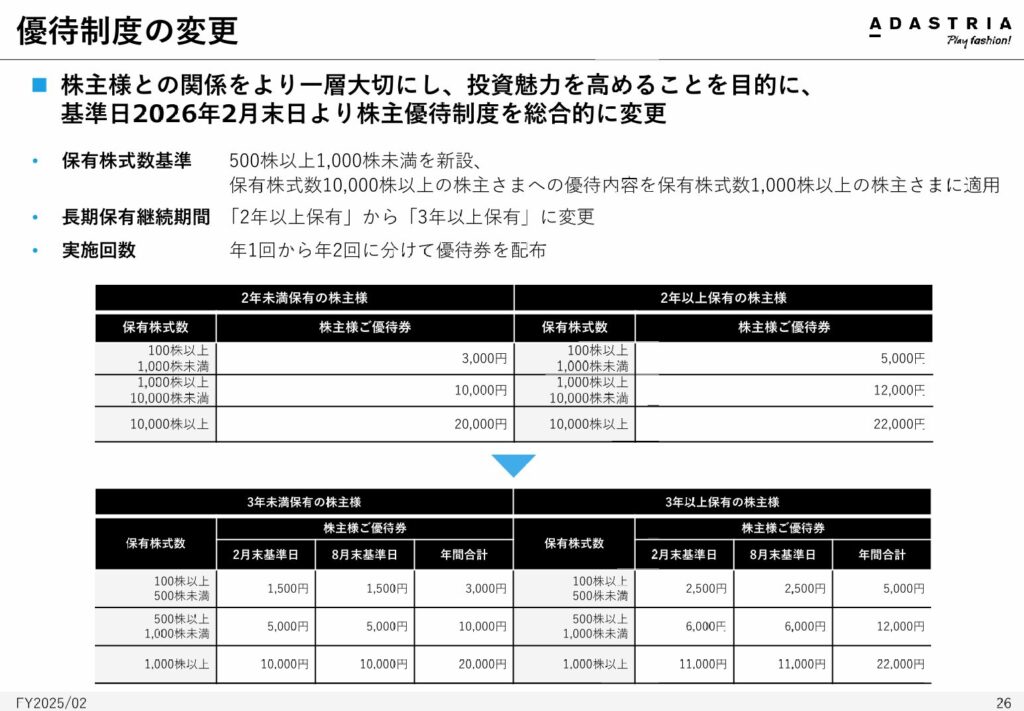 たとえば、2月26日(権利落ち日)以降に購入した場合、その月の優待を受け取ることはできません。