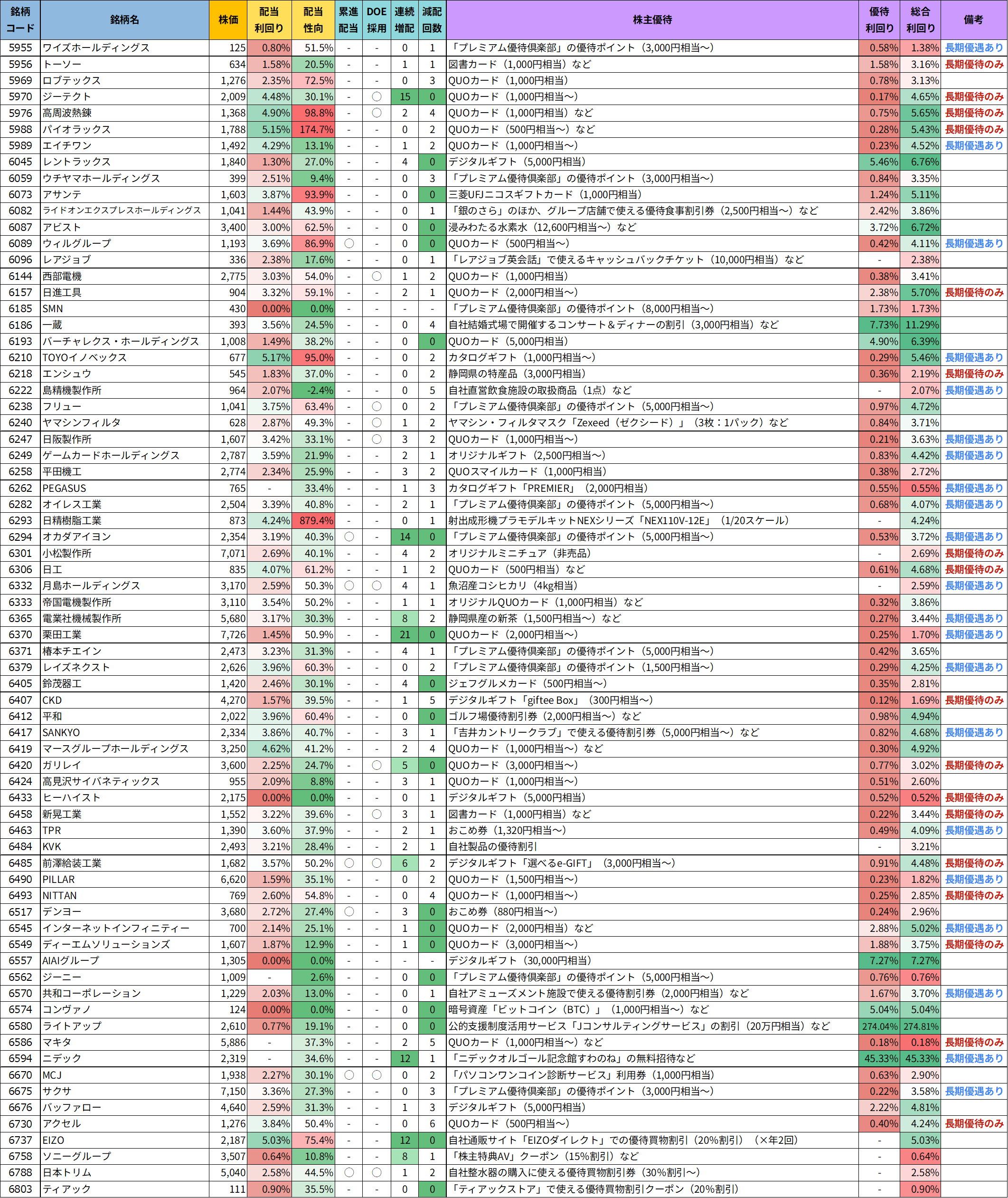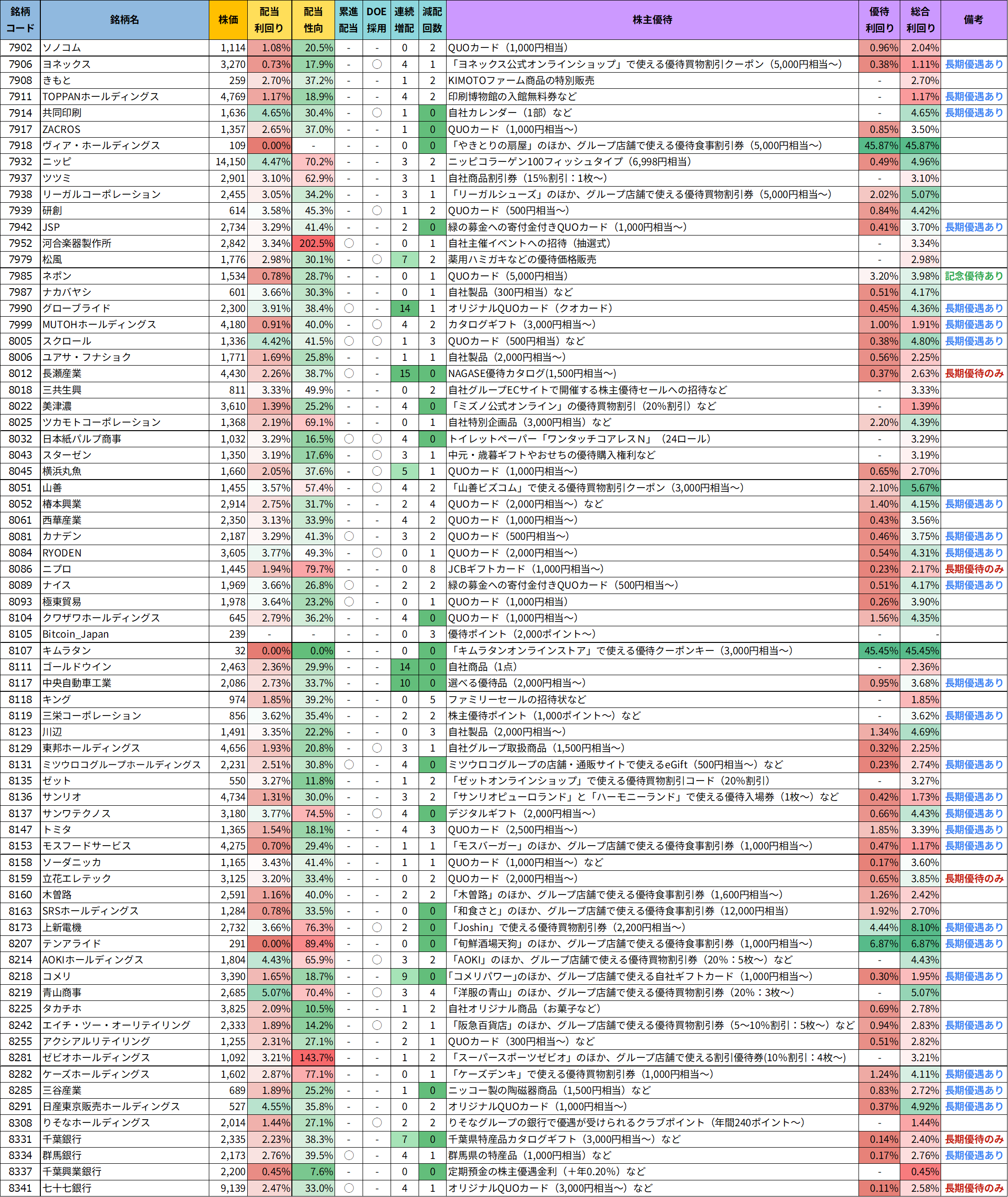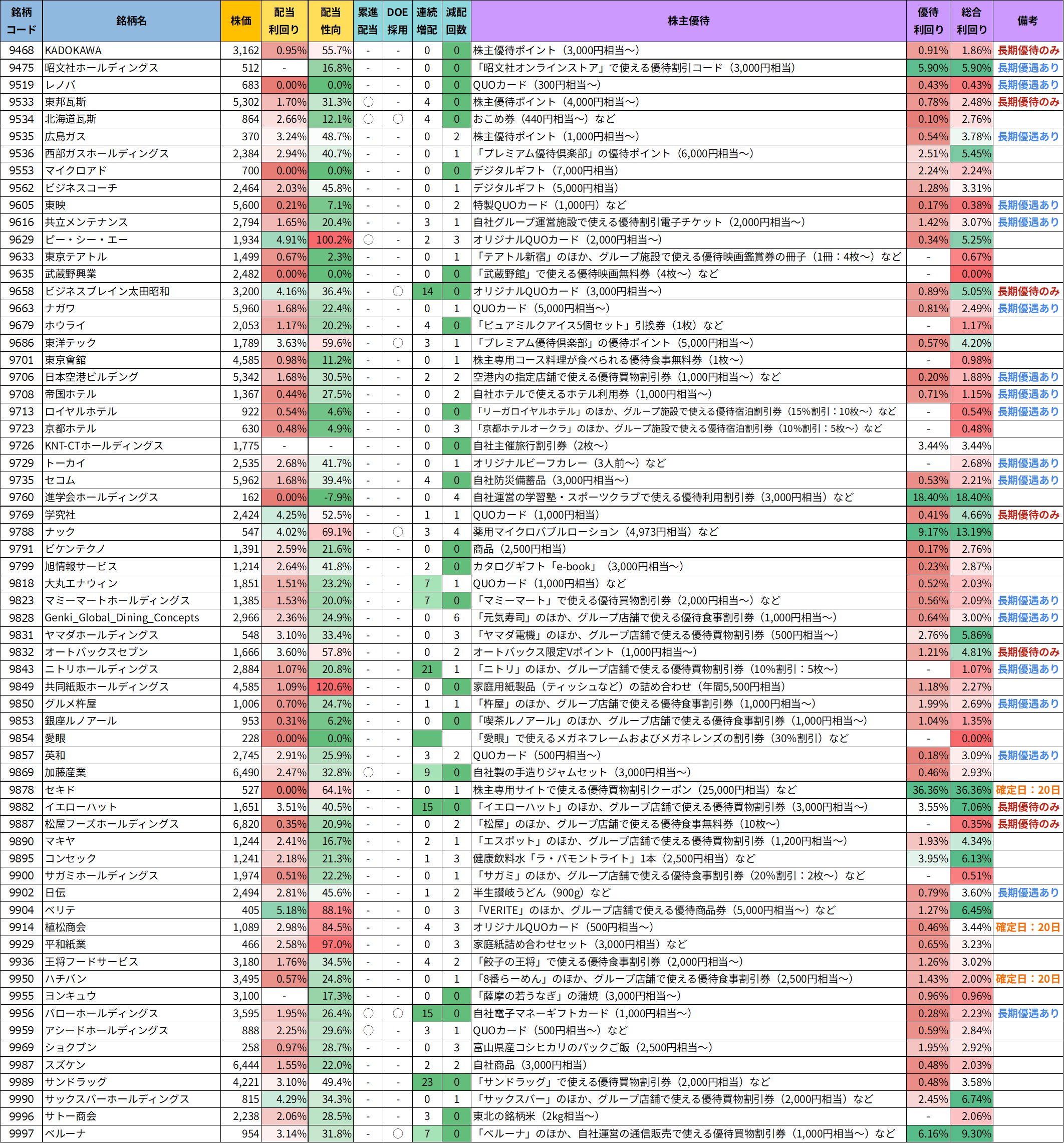 優待銘柄リスト
