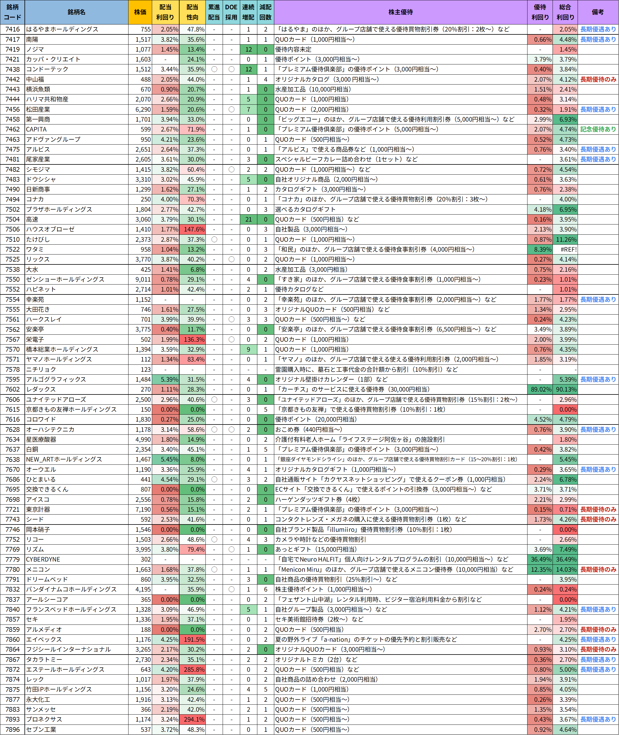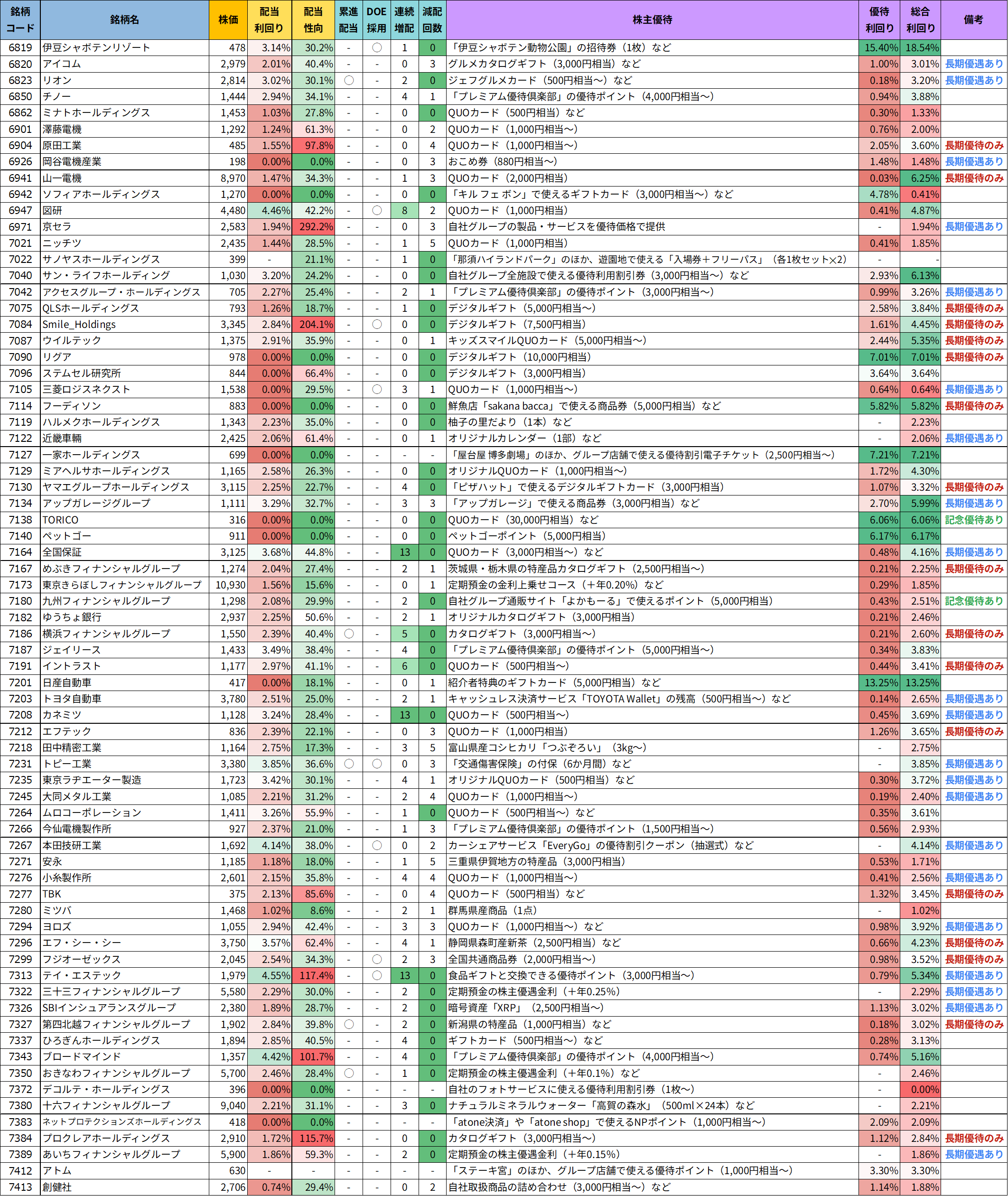 注目優待銘柄のピックアップ