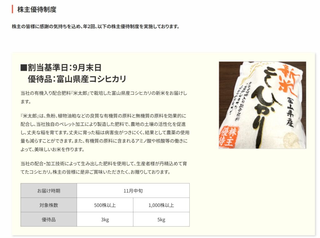 • 加えて、200株から受け取れるお米券の株主優待があり、配当を補完する還元策として機能しています。