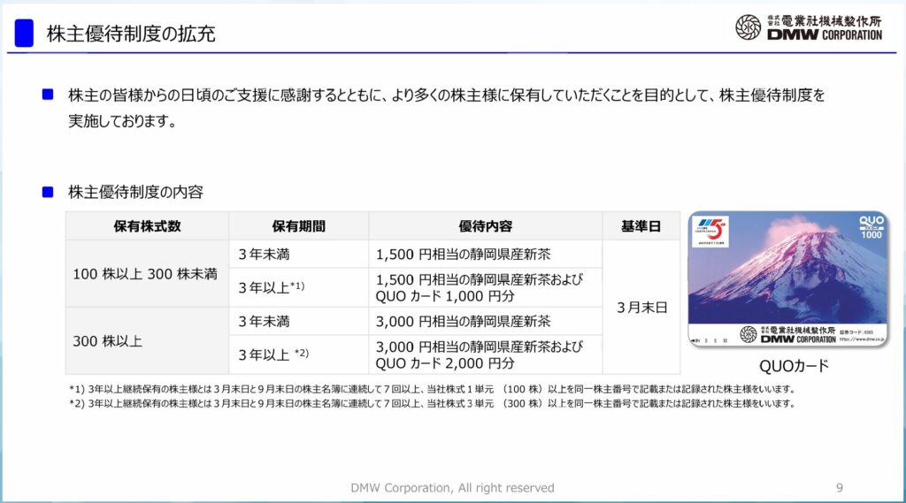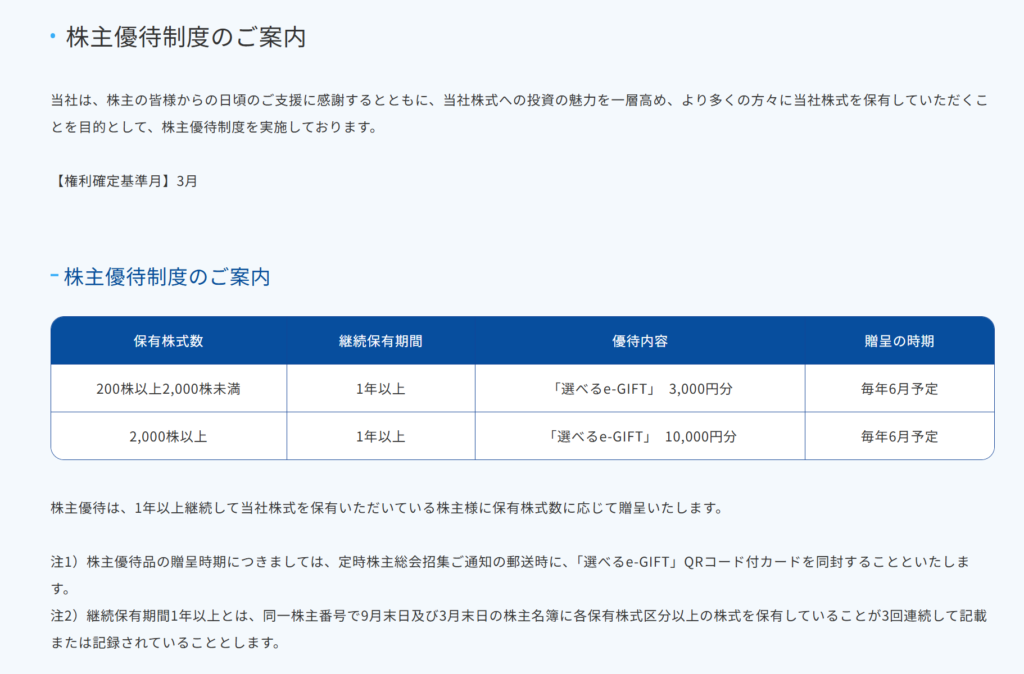長期保有を前提とした、堅実で分かりやすい株主優待制度と評価できます。
