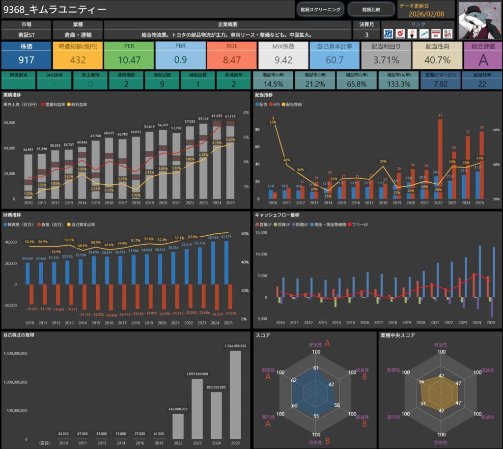 キムラユニティーは、トヨタグループ向け部品物流という強固な収益基盤を軸に、長年にわたって安定した事業運営を続けてきた企業です。