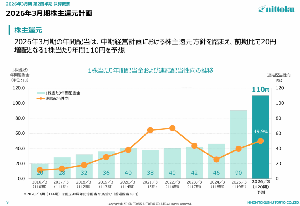 • 10期連続増配予定という実績があり、還元の継続性には信頼感があります。