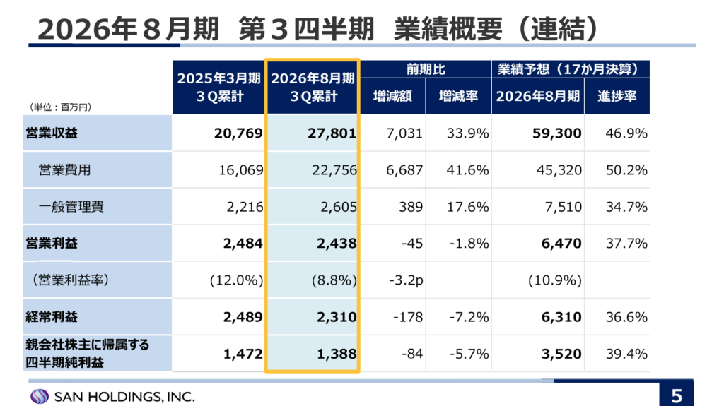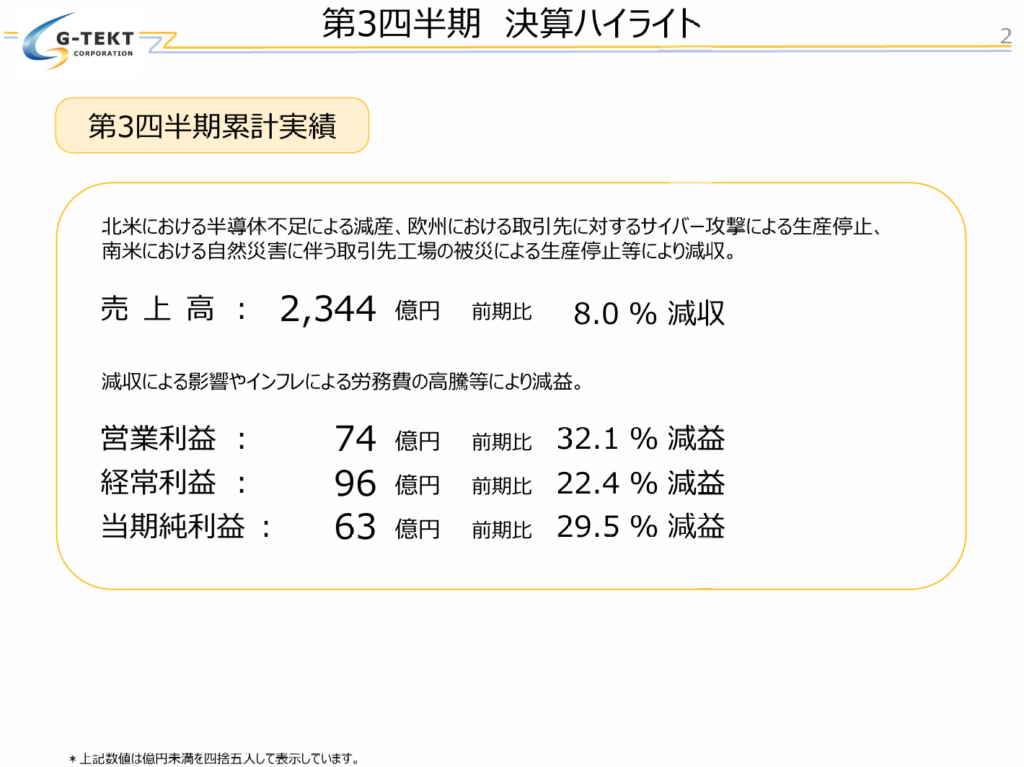• 収益性は維持しているものの、営業段階では減益となりました。