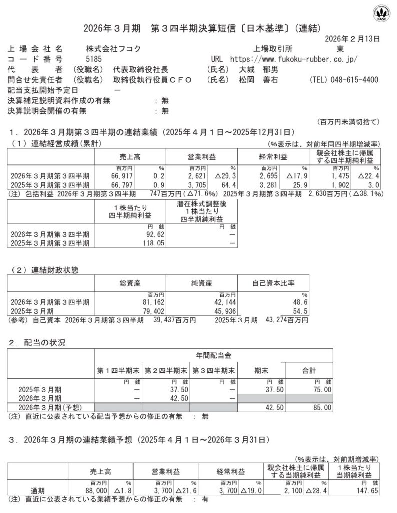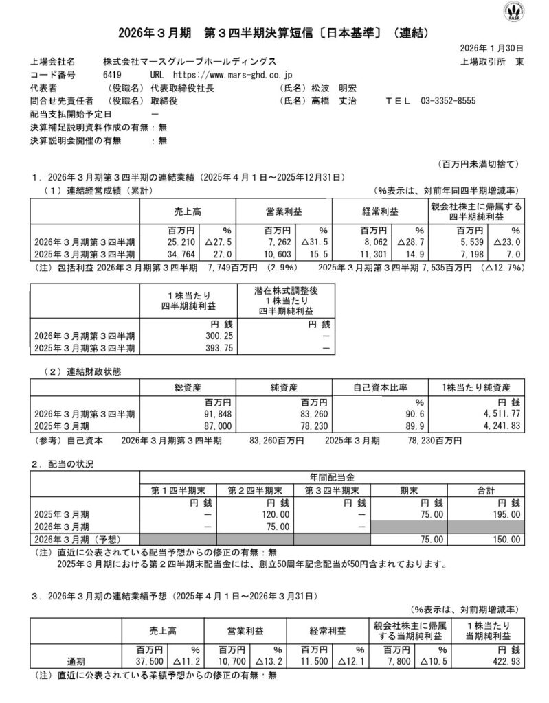 • 自己株式の取得については、株価や経営環境を踏まえて機動的に検討するとしています。