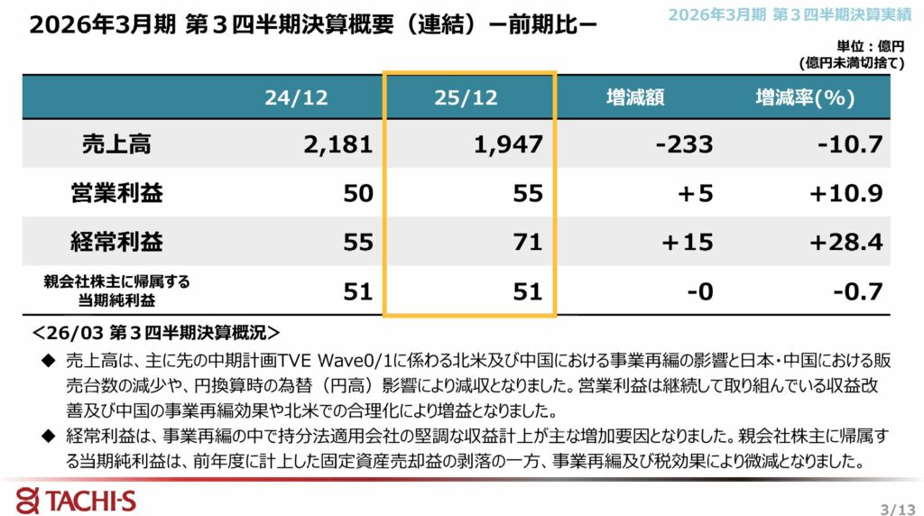 • 価格競争や需要構造の変化が収益性に影響する局面も想定しておく必要があります。
