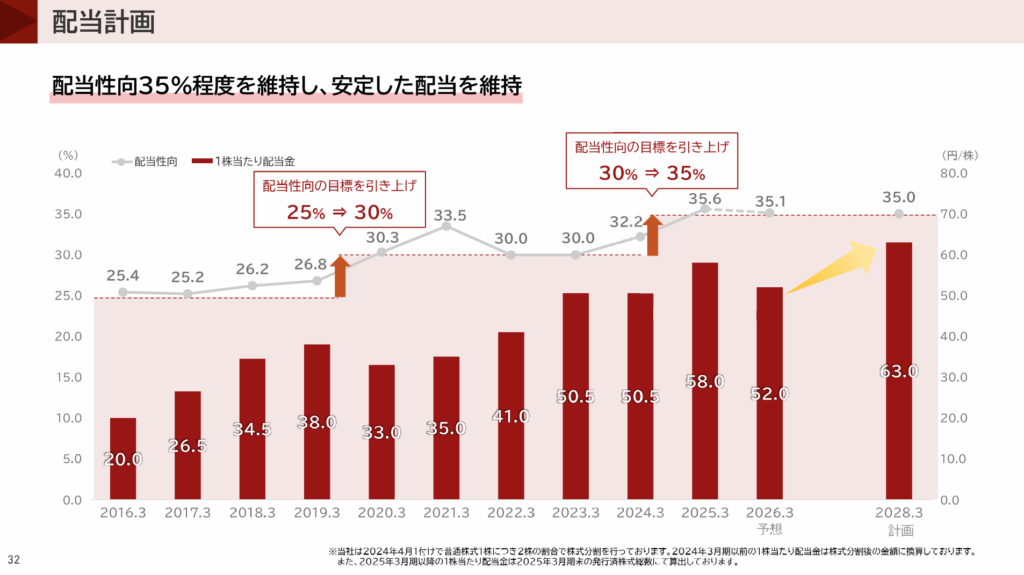 累進配当を明確に打ち出している点は、長期保有を前提とする投資家にとって大きな安心材料です。