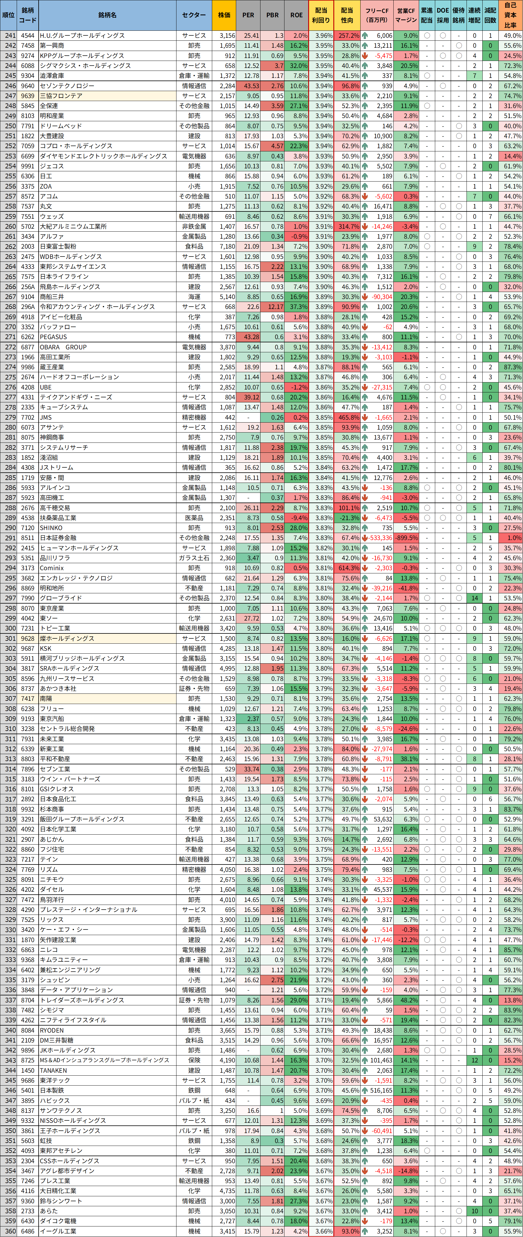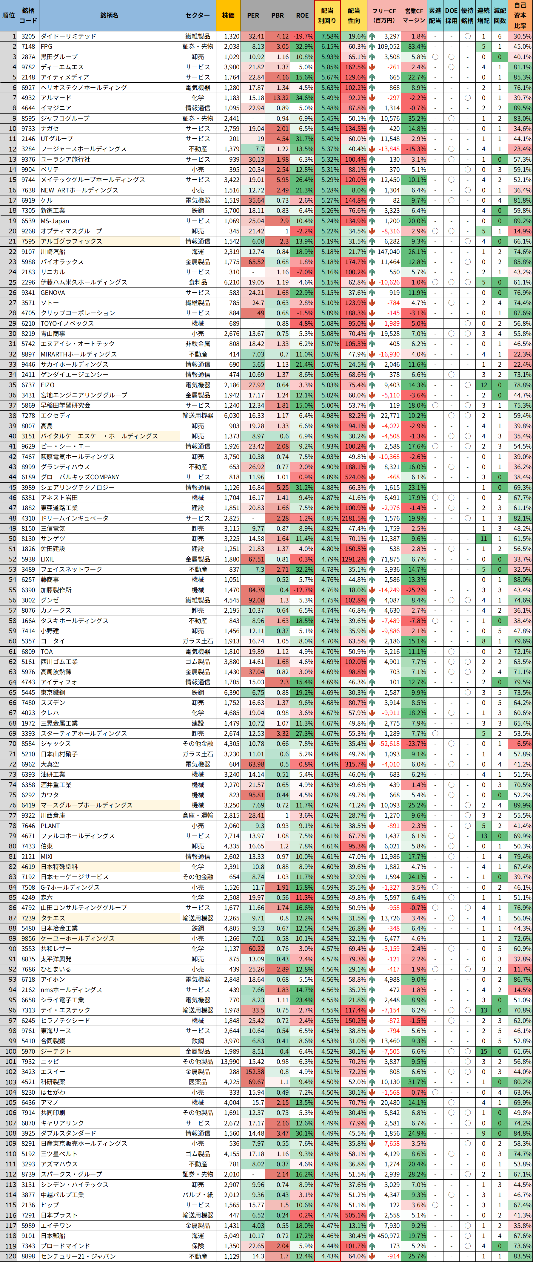 基本情報や財務指標、配当利回りなどを一覧で比較できる形式になっており、効率的に候補を検討いただけます。