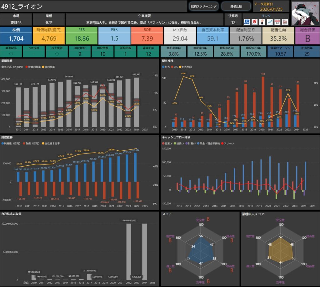 ライオンは、そんな落ち着いた距離感で保有している銘柄です。
