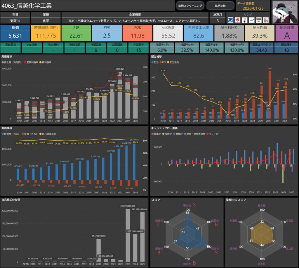信越化学は半導体材料や化学素材の分野で存在感があり、「将来的に面白いかも」と感じていました。