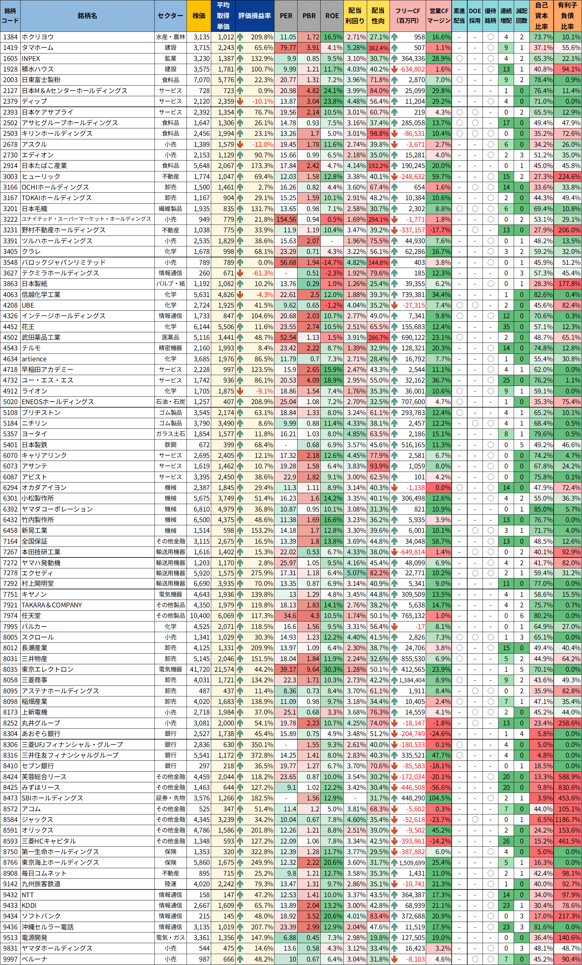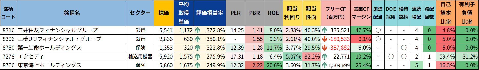 今回まとめている保有銘柄一覧は、そうした試行錯誤の積み重ねの結果として、今この時点で手元に残っている銘柄を並べたものです。